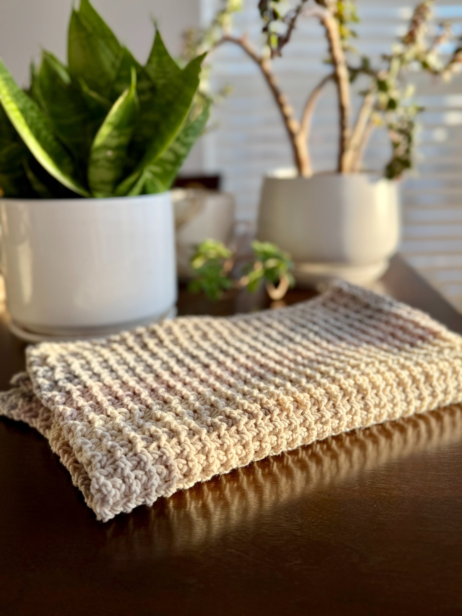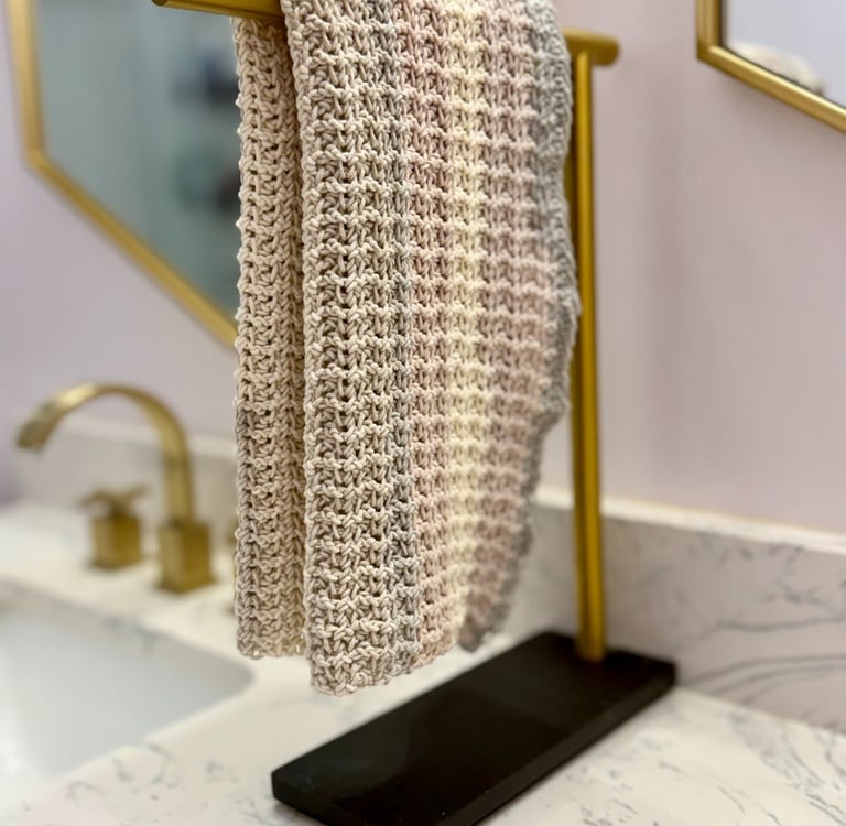 This pattern was created to be easy enough for confident beginners, while still producing a finished towel that looks polished and thoughtfully handmade. It’s also a great stash buster, using just one skein of cotton yarn and basic stitches to create a subtle, textured fabric that works beautifully in any color.